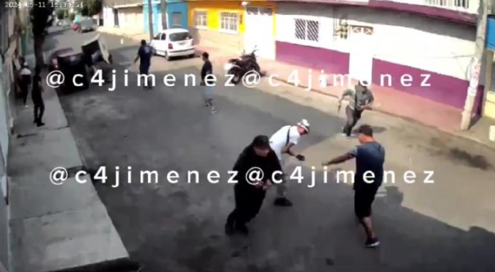 Los hechos ocurrieron en la alcaldía Gustavo A. Madero, Ciudad de México, en donde una cámara de seguridad logró captar el momento en que se dio un tiroteo entre un peatón y dos motociclistas.