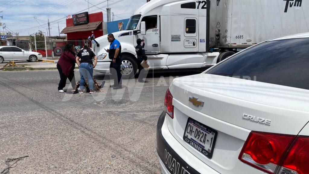 Aproximadamente a las 11:30 de la mañana. Una pareja que tripulaba una motocicleta fue impactada por la parte de atrás por parte de un camión de carga pesada cuando esperaban el semáforo en la avenida Río Chuviscar Sur, justo en la intersección con la avenida Fernando Baeza Meléndez. Luego del impacto la mujer de aproximadamente 60 años de edad, edad resultó lesionada.