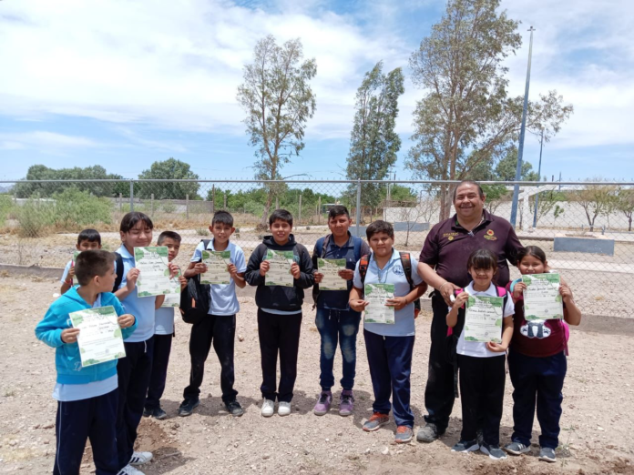 A los niños con mayor participación se les otorgó un árbol como obsequio y se les entregó una constancia de cada uno de ellos, con la finalidad de que se le otorgue un nombre y con el compromiso de cuidarlo en la escuela, el cual ahí mismo se planto.