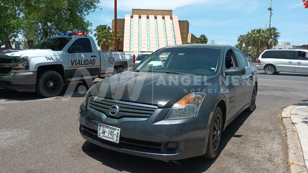 Los autos involucrados son un taxi del sitio Cielo Vista, marcado con el número económico 123, de la línea Tsuru, marca Nissan, mientras que el otro, también de la marca Nissan, de la línea Altima, color gris, con matrículas EJW-140-A, el cual circulaba de norte a sur sobre la Agricultura, mientras que el taxi de poniente a oriente sobre la Río Conchos.