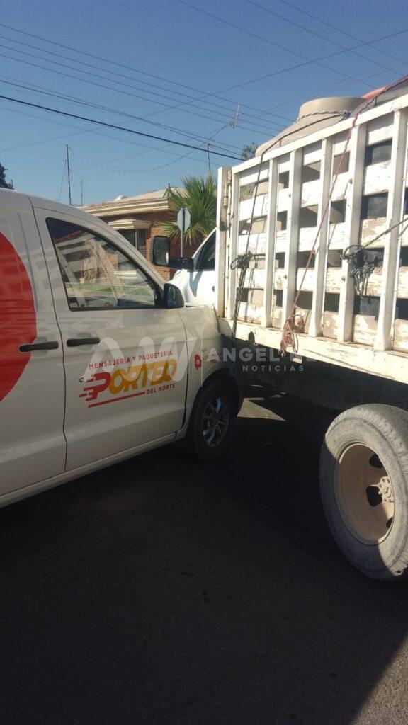 El incidente involucró a dos vehículos: una camioneta de redilas tipo tres cuartos y una camioneta tipo Van, perteneciente a una paquetería local, la cual, según los primeros reportes impactó la parte lateral izquierda de la cabina de la camioneta de redilas, causando considerables daños materiales.