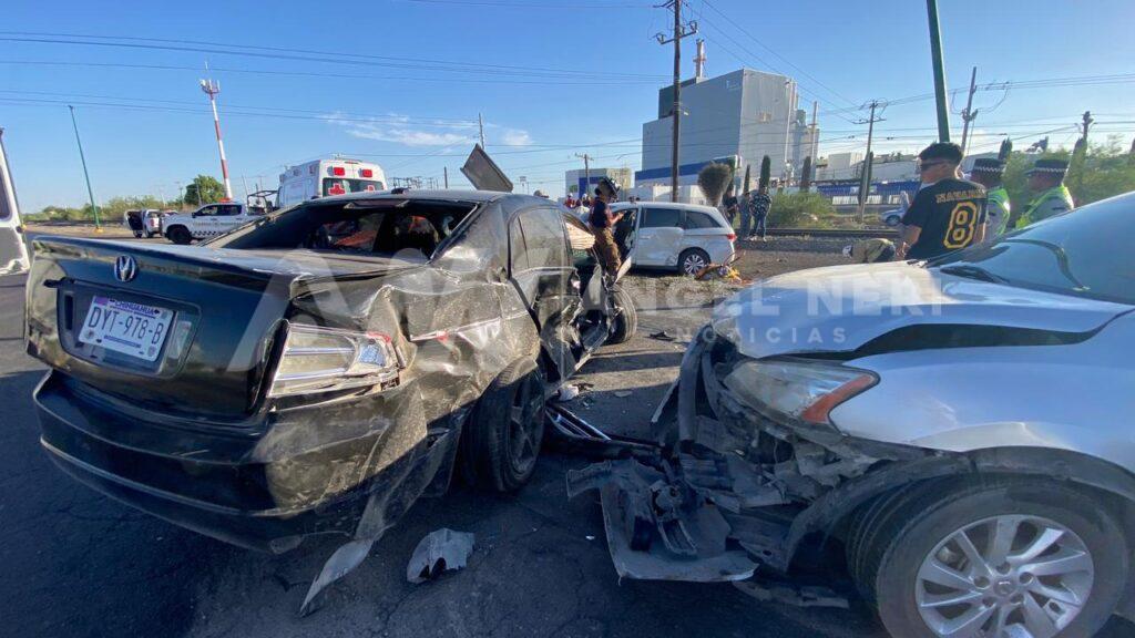 Se trata de una camioneta de la marca Honda, tipo Van Odyssey, color blanco, con matrículas del estado de Durango, así como un vehículo gris y un automóvil negro, ambos tipo Sedán, los cuales quedaron prácticamente en perdida total, por lo que fueron asegurados y abordados por las grúas locales, para su trasladado al corralón.