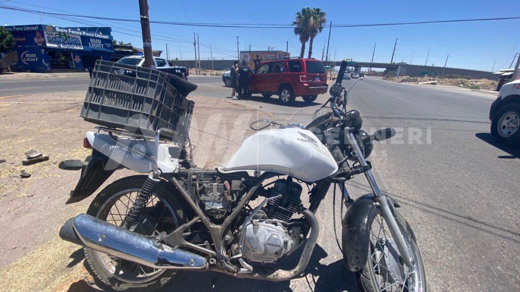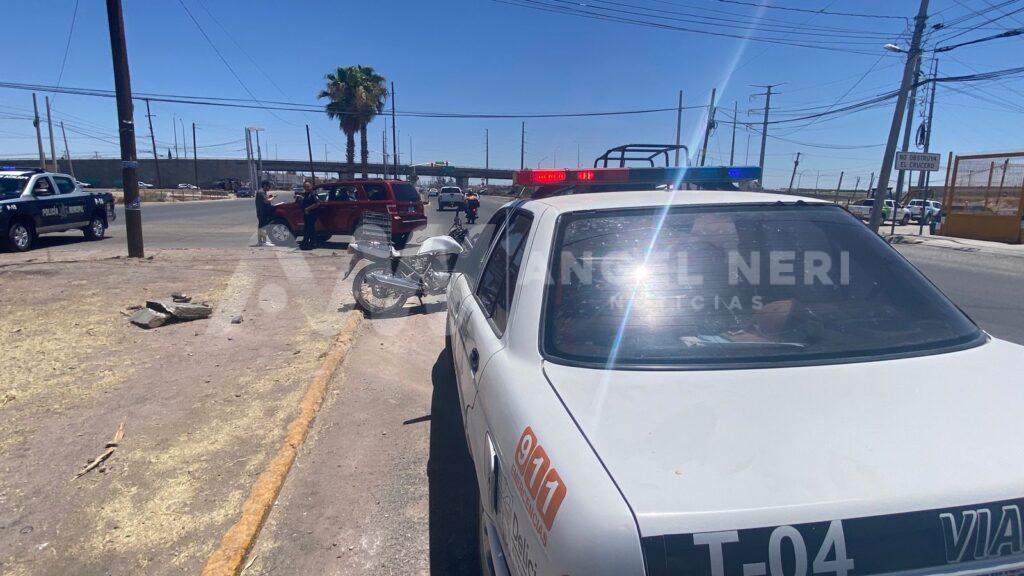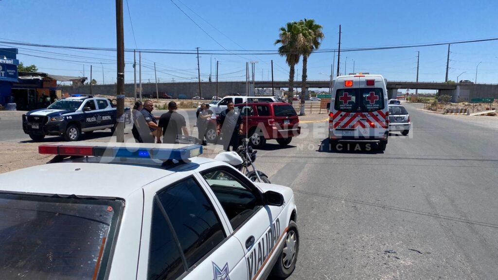 El hecho se registró aproximadamente a las 12 del mediodía de este viernes en la avenida Fernando Baeza Meléndez unos metros antes del puente del Cielo Vista, ahí el conductor de una motocicleta resultó con una fractura en una de sus piernas al ser impactado por un vehículo.