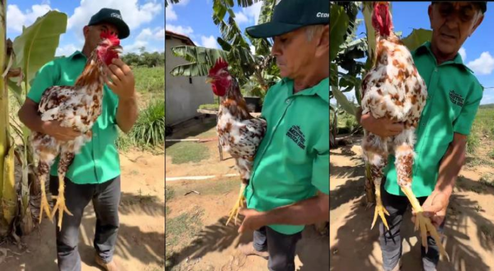 A través de las redes sociales, se dio a conocer un video en el que se puede ver a un señor de edad avanzada cargando a un gallo. Todo va bien hasta que comienzan a alejar la cámara dando a conocer que el animal es más grande.