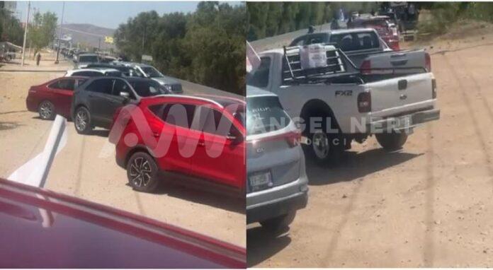 Los autos se estacionaron a lo largo de la carretera que lleva al aeropuerto, formando una impresionante caravana en espera de la candidata.