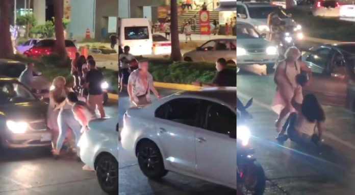 Mientras tanto, la señora se está agarrando a golpes con la jovencita, quien termina en el suelo debido a que la mujer le da puñetazos, jalones de cabello y patadas en varias ocasiones.