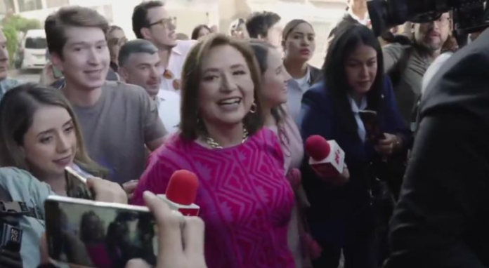 Xóchitl Gálvez salió de su casa y caminó unos metros para llegar a la primaria El Chamizal para emitir su voto.