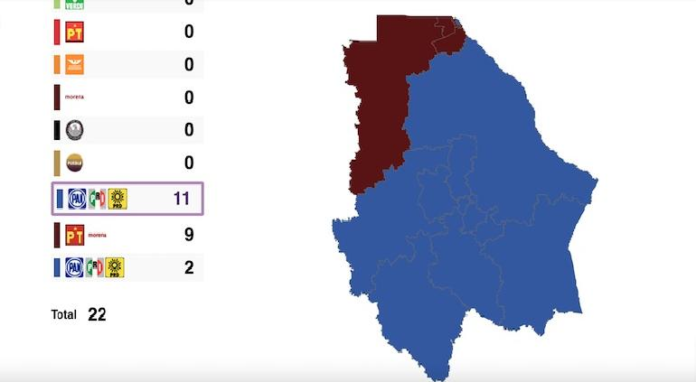 Congreso del Estado: En el Congreso Local, la coalición PAN-PRI-PRD se perfila como la fuerza dominante, adjudicándose hasta el momento 13 distritos. Por su parte, la coalición MORENA-PT-Verde ha logrado obtener 9 distritos, consolidando su presencia como la segunda fuerza política en el Congreso.