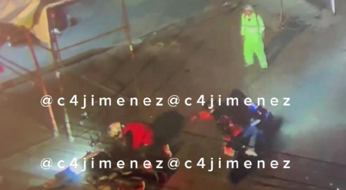 En el video tomado en Tepito, Ciudad de México, se puede ver a dos barrenderos recogiendo sus cosas, cuando de la nada llega un motociclista y se cae, al principio le quieren ayudar pero en eso dos motociclistas armados se acercan.