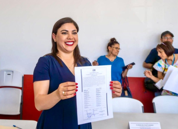 Fue en la Asamblea Municipal de Elecciones de Meoqui, al rededor de las 10:20 de la mañana, donde la arquitecta recibió él acta que hace constar la mayoría de votos, que la acredita como la ganadora en este proceso que acaba de concluir, dando así certeza legal de encabezar el proceso 2024-2027 al frente del municipio, en el lugar la acompañaron familiares, amigos, medios de comunicación.
