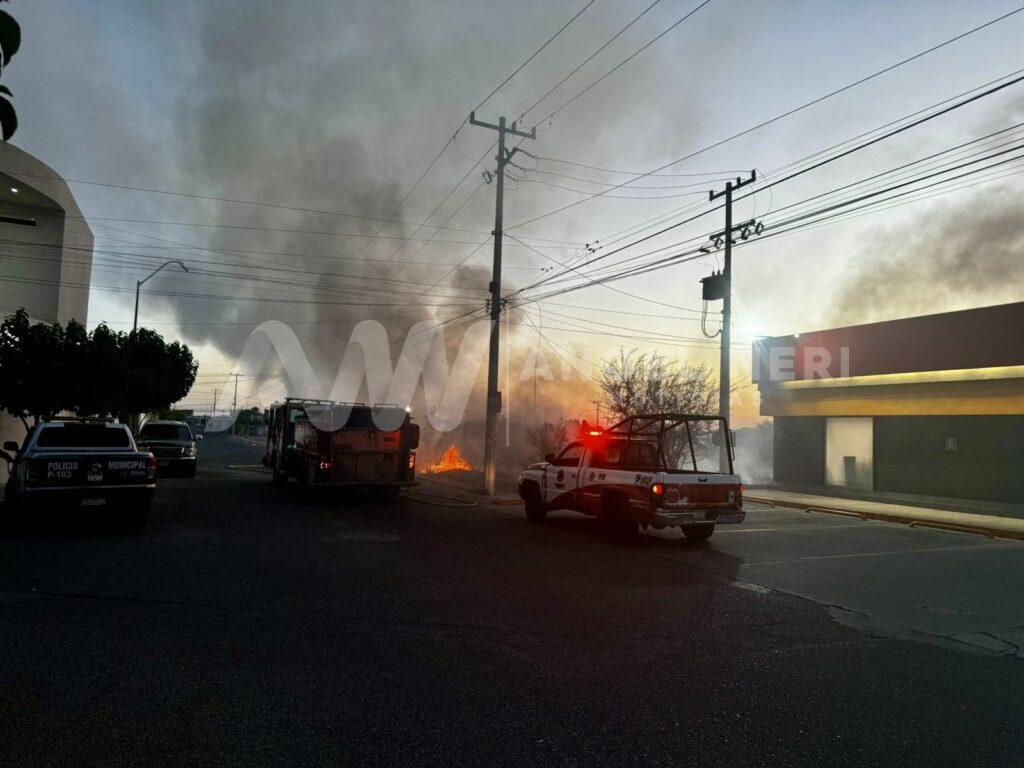 Un fuerte incendio en hierba seca se registró la madrugada de este lunes en un predio en el fraccionamiento Los Cipreses, el hecho movilizó a las corporaciones de emergencia.