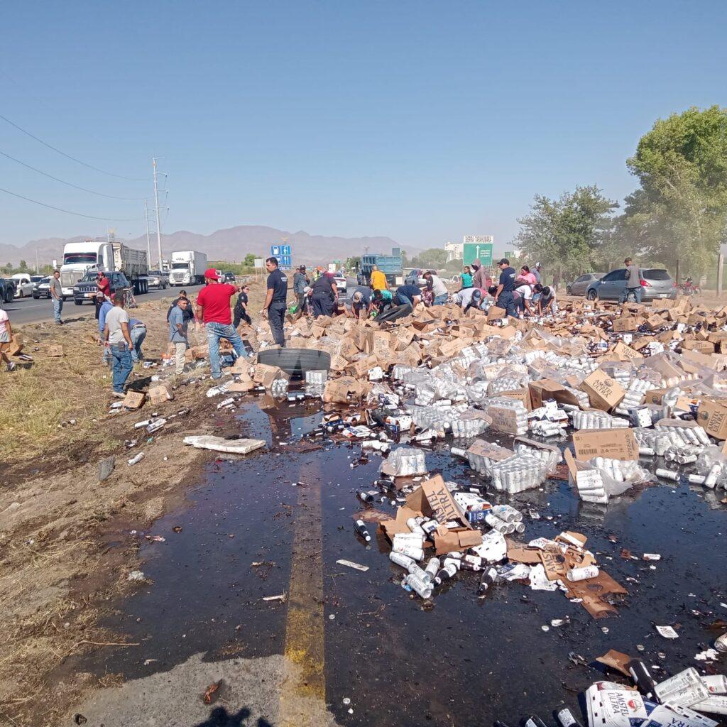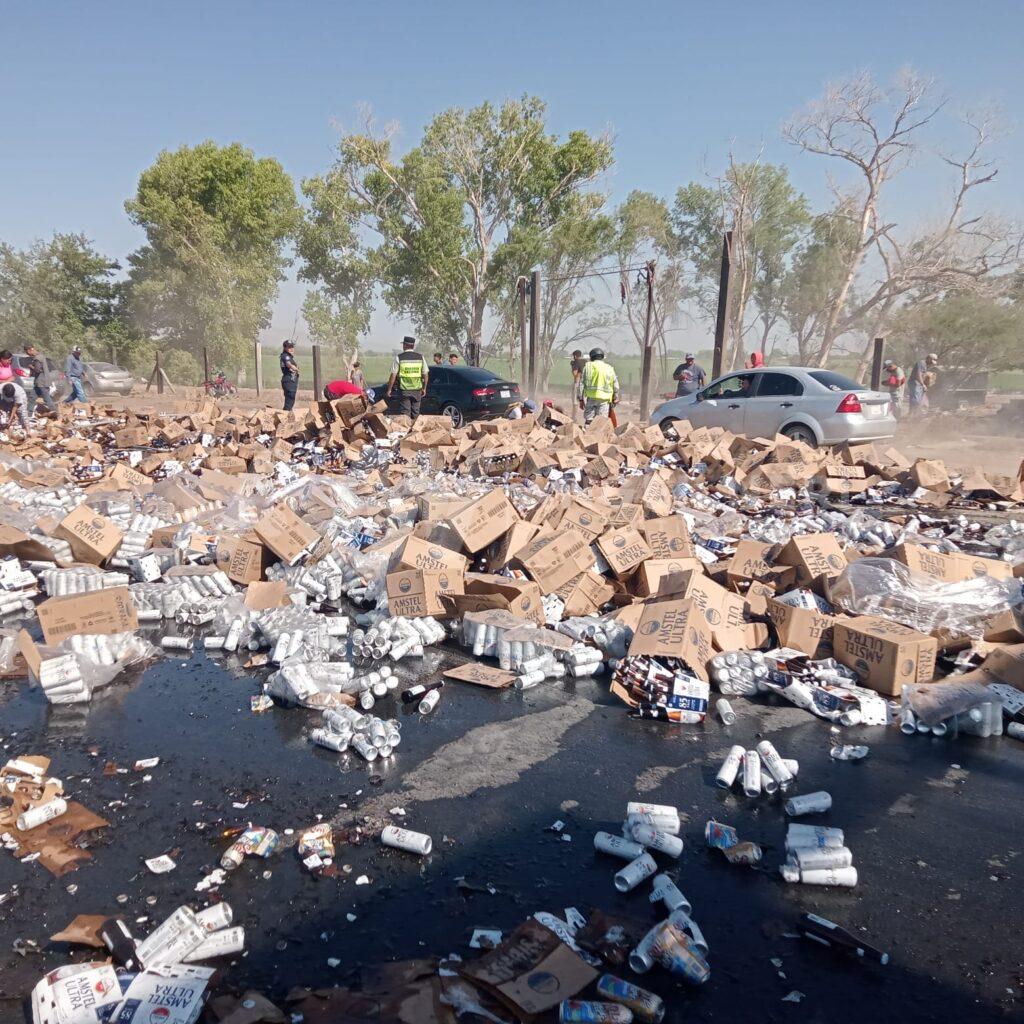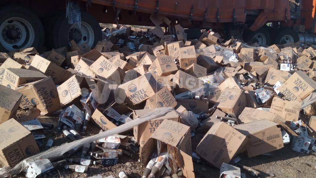 Uno de los tráiler involucrados en el accidente transportaba cerveza, la cual quedó esparcida en el lugar, agregando al caos y dificultando aún más la limpieza y liberación de la vía.