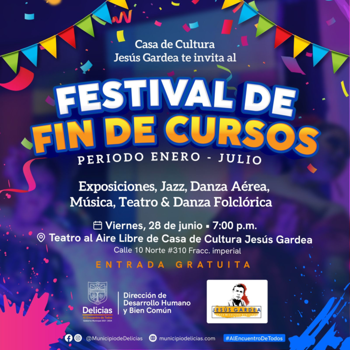 El director de Desarrollo Humano y Bien Común, Enrique Valenzuela, extendió una cordial invitación a los habitantes de Delicias para que asistan al cierre de arte y cultura del primer semestre de la Casa de Cultura Jesús Gardea.