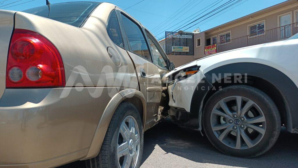 A poco más de 30 minutos de que se registrara un percance vial en el primer cuadro de la ciudad sobre la avenida Río Chuvíscar, se produjo otro accidente en el lado oriente de la misma avenida, involucrando a dos vehículos, siendo atendidas dos personas, una por dolor en cervicales y otra por crisis nerviosa, dejando además daños por 60 mil pesos.