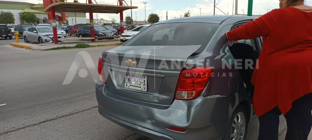 El accidente ocurrió cuando el automóvil Chevrolet frenó para virar a la izquierda y entrar al estacionamiento del negocio Museo del Taco, siendo impactado en la parte posterior por la camioneta.