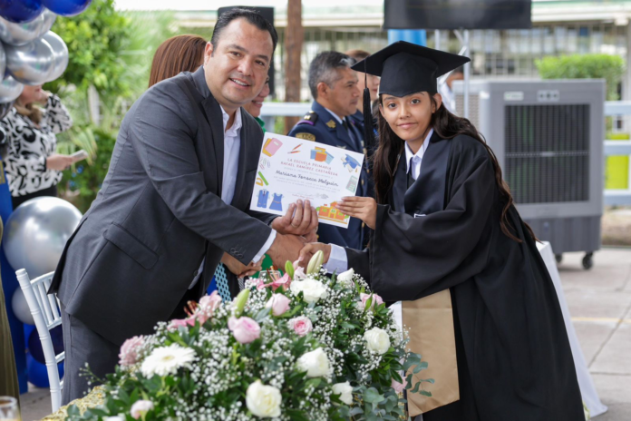 Durante la ceremonia de graduación de la Escuela Primaria Rafael Ramírez Castañeda, padres de familia, maestros y directivos agradecieron al alcalde Jesús Valenciano García por las gestiones realizadas para la construcción de nuevas aulas y baños, que ahora son una realidad para el beneficio de la comunidad estudiantil.