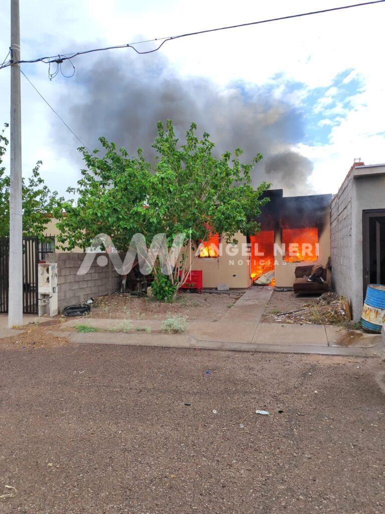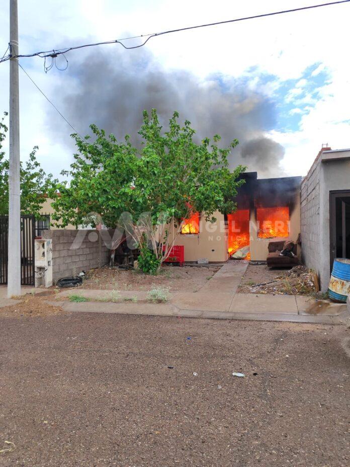 Fue minutos antes de las 8 de la mañana, cuando se registró el llamado al 911, en el que referían que la vivienda marcada con el número 2017 de la calle Artemio Iglesias, del fraccionamiento Paseo del Algodón, se estaba consumiendo por el fuego, por lo que desde distintos puntos de la ciudad se pudo observar la columna de humo de varios metros de altura.