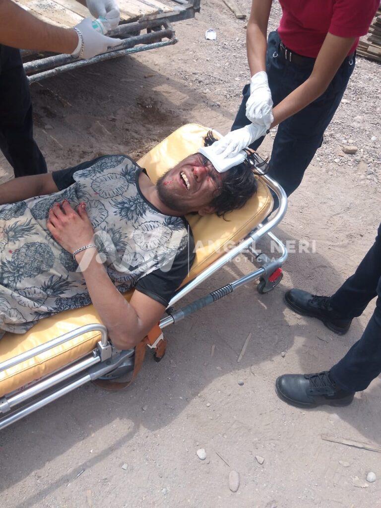 Al lugar arribaron paramédicos de U.R.G.E. de Rosales, quienes indican que se trata de un trabajador de nombre Guillermo V.S., de 29 años de edad, el cual sufrió un golpe contundente en la parte frontal del cráneo, lo que probablemente causó un traumatismo cerebral y una posible fractura de hombro.