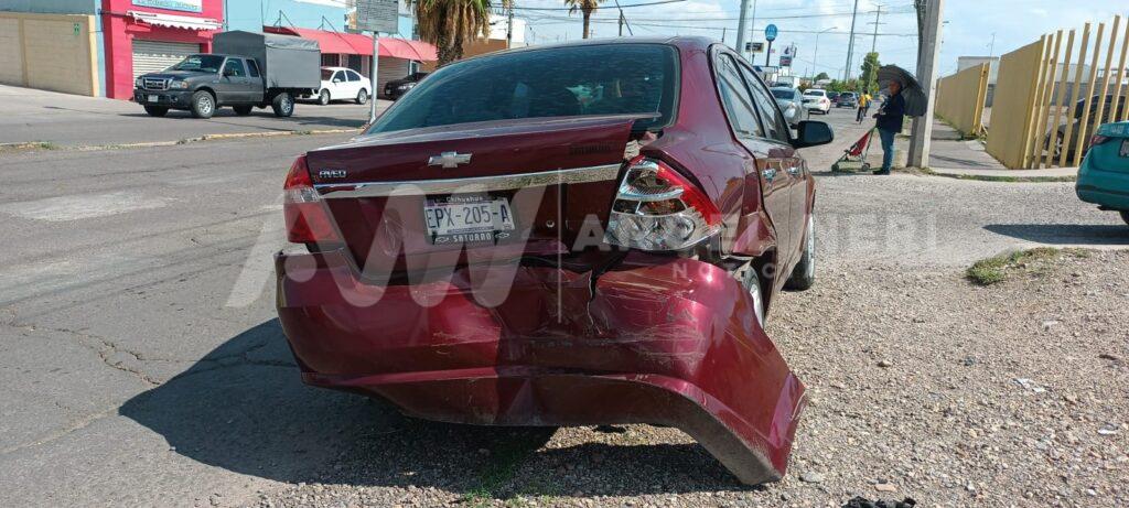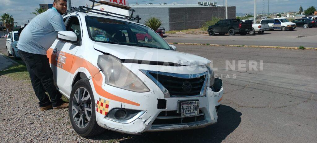 El percance ocurrió cuando un taxi del sitio Las Torres, identificado con el número económico 157, no guardó la distancia adecuada al circular, impactando con su parte frontal la parte posterior de un automóvil Chevrolet Aveo color guinda, con placas de circulación EPX-205-A, dejando severos daños en ambos vehículos.