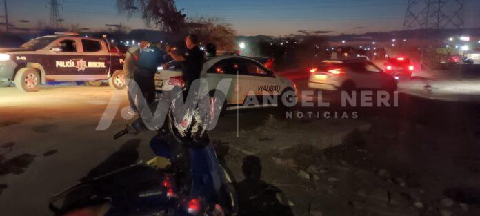 Un accidente de tránsito se registró esta noche en el cruce de la avenida de Las Moras y la entrada del fraccionamiento Cumbres del Deporte, donde una patrulla de seguridad pública municipal impactó a un motociclista al tratar de incorporarse a la mencionada avenida.