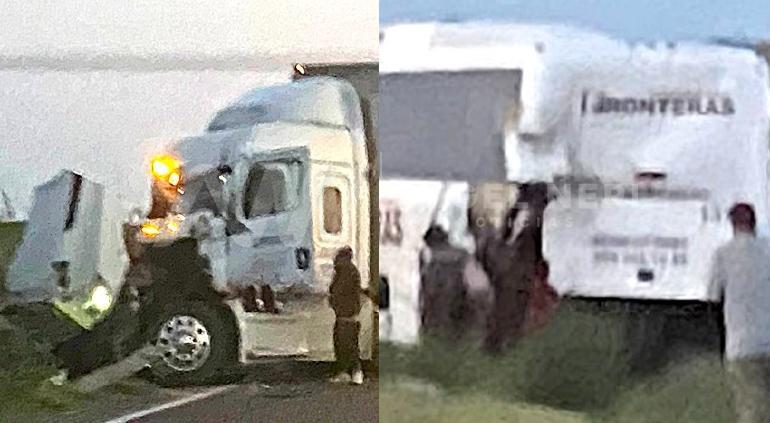 El incidente ocurrió alrededor de las 6:00 a.m., involucrando un camión de pasajeros de la Línea “Fronteras” y un tráiler de paquetería. Debido al fuerte impacto, el camión de pasajeros salió de la cinta asfáltica, quedando a un lado de la carretera.