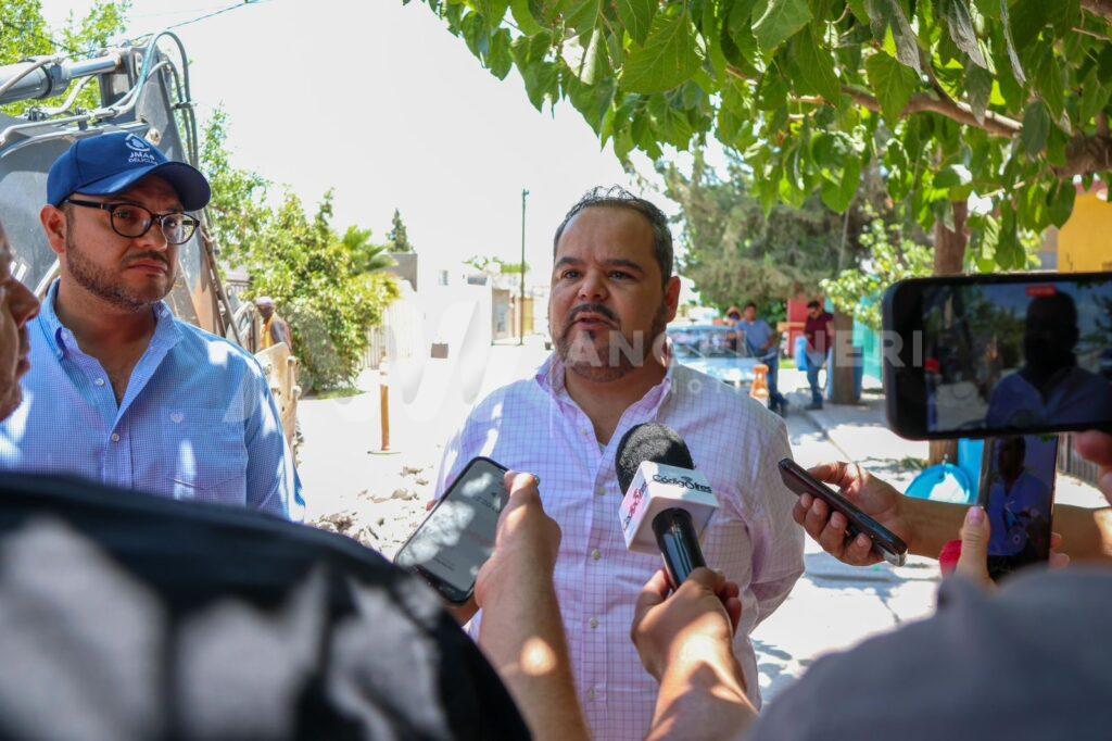 Son 400 metros lineales de tubería del drenaje de ocho pulgadas, serie 20, lo que será remplazado sobre casi la totalidad de la calle 18 de marzo en colonia Obrera, donde el titular del organismo anunció la inversión que supera el millón de pesos, “tan solo para la reparación de este tramo de 400 metros”.