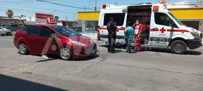 Un accidente de tránsito entre dos vehículos se registró la mañana de este jueves en el cruce de la avenida Sexta Norte y la calle Séptima, en el sector norte, dejando daños materiales cuantiosos y una mujer con dolor muscular y crisis nerviosa, involucrando a un automóvil de la marca Nissan, tipo Tsuru, color blanco y y a un Ford Fiesta rojo.