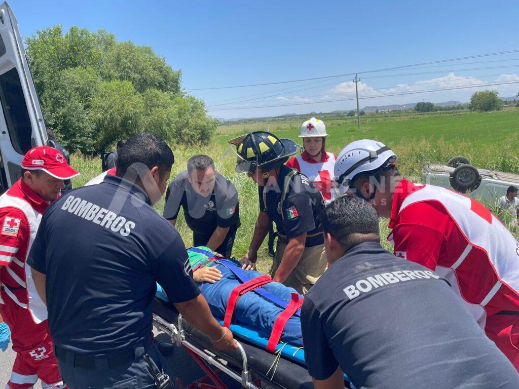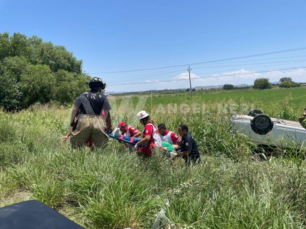 Un accidente automovilístico tipo volcadura se registró sobre la carretera de Delicias a Meoqui, poco antes de llegar al entronque con la colonia Terrazas, conocido como El Salado, alrededor de las 12:30 del medio día de este martes, cuando un vehículo de la marca Sentra, modelo 2013 color blanco, perdió el control y se volcó hacia su lado derecho mientras circulaba en sentido sur-norte.