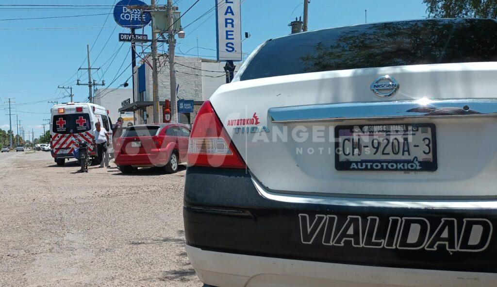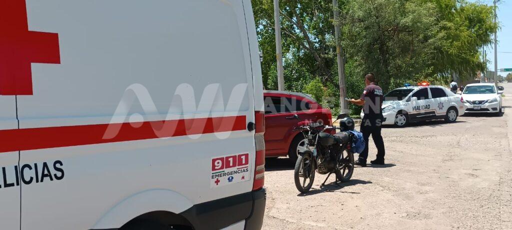 Un percance vial se registró alrededor de la una de la tarde en el cruce de la prolongación de la avenida Fernando Baeza con la avenida del Canal, en la entrada del fraccionamiento Colinas del Valle, involucrando a un vehículo particular y una motocicleta.