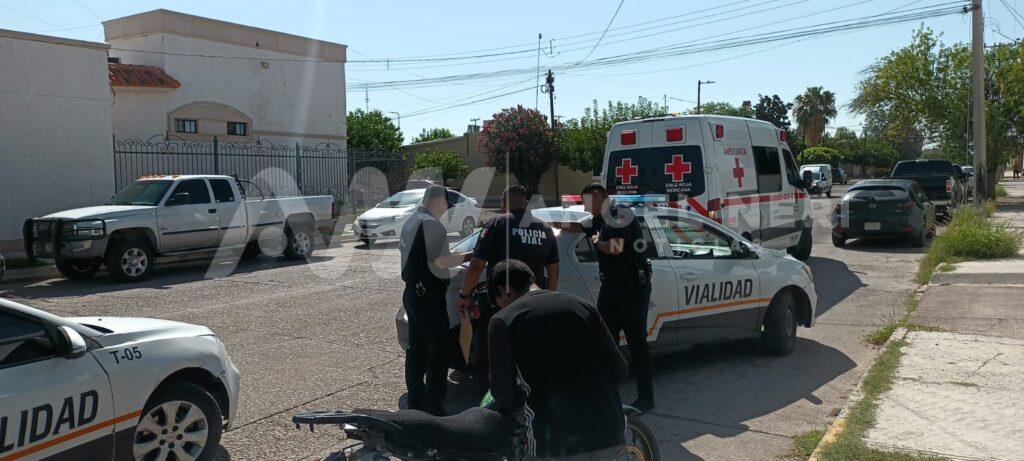 Un accidente entre dos motocicletas en el sector sur de la ciudad resultó en un hombre lesionado y 10 MIL pesos en daños materiales, lo anterior, ocurrió cuando una de las motocicletas invadió el carril contrario y colisionó con la otra, provocando que ambos conductores cayeran al suelo, sin embargo, solo uno de ellos requirió atención hospitalaria.