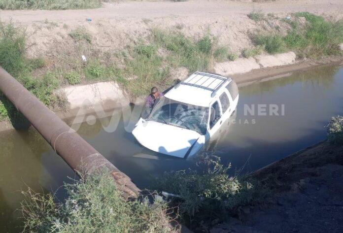 Esta mañana se reportó un accidente tipo salida de camino y posterior caída a canal, en una terracería ubicada a un costado de la acequia en Saucillo, hasta donde se hizo presente el oficial Eduardo Fernández, de la unidad T-13 de Vialidad, para tomar nota, localizando el auto semi sumergido y a su conductor por fortuna a salvo afuera de este.
