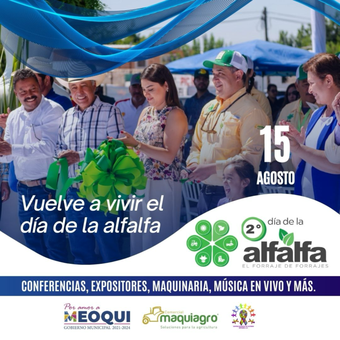 Ya está todo listo para que este próximo 15 de agosto se lleve a cabo la Segunda Edición del Día de la Alfalfa en Meoqui, donde Comercial Maquiagro, en coordinación con Gobierno Municipal, invitan a las familias, productores, y habitantes de toda la región y del estado para que asistan a este evento, que contará con conferencias, expositores de productos y maquinaria, música en vivo y más sorpresas, llevándose a cabo en el campo de la empresa ubicado en el Molino Rinconeño de 9 am a 5 pm.
