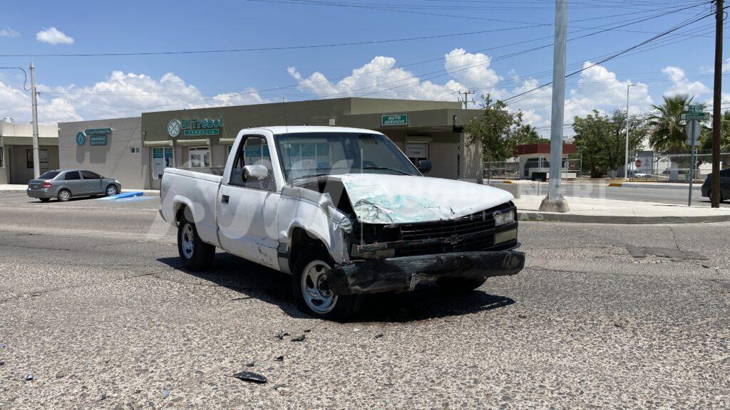 Los hechos se registraron en la interseccion de las avenidas Río Chuviscar y 8va, así como la calle 10, en dónde una pick up Chevrolet, color blanca, con matrículas del Estado de Chihuahua, impactó a una van, tipo Combi, color verde, en la cual viajaba un masculino de aproximados 50 años, quedando esta último sobre su toldo.