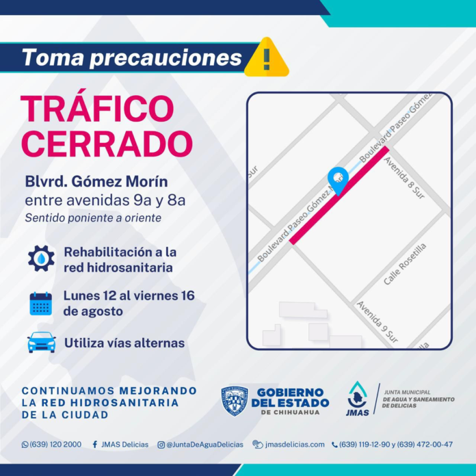 Para ello, es necesario cerrar el tráfico en algunos tramos, como el Blvrd Gómez Morin, entre las avenidas 9a y 8a sur, en sentido de poniente a oriente.