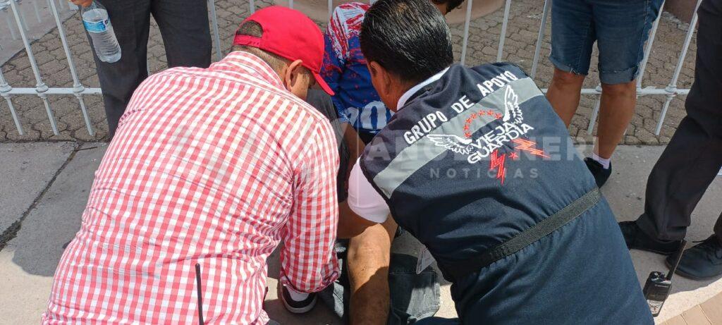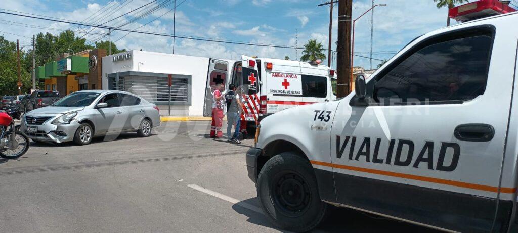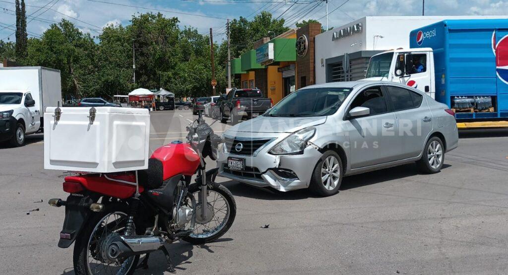 Un motociclista resultó con una probable fractura en una de sus extremidades inferiores, luego de impactar contra un vehículo que omitió el señalamientos gráfico de alto en calles del primer cuadro de la ciudad, prácticamente al exterior del templo de Fátima, a una cuadra de la plaza de armas.