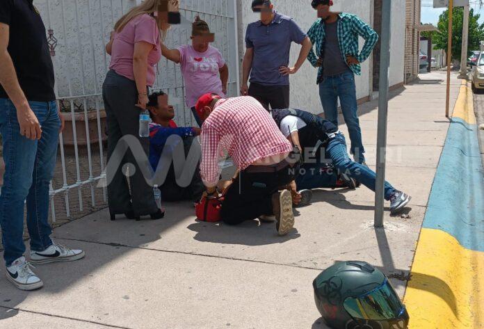 Un motociclista resultó con una probable fractura en una de sus extremidades inferiores, luego de impactar contra un vehículo que omitió el señalamientos gráfico de alto en calles del primer cuadro de la ciudad, prácticamente al exterior del templo de Fátima, a una cuadra de la plaza de armas.