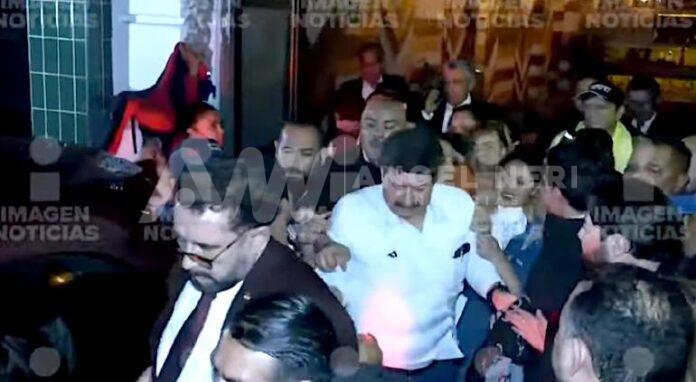 Corral salió en medio de un tumulto de gente, que no se definió bien si eran simpatizantes del Gobierno de la CDMX o testigos circunstanciales.