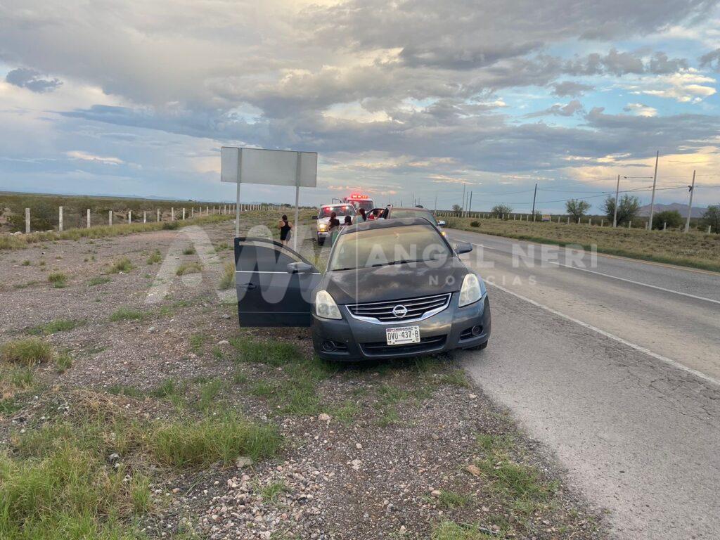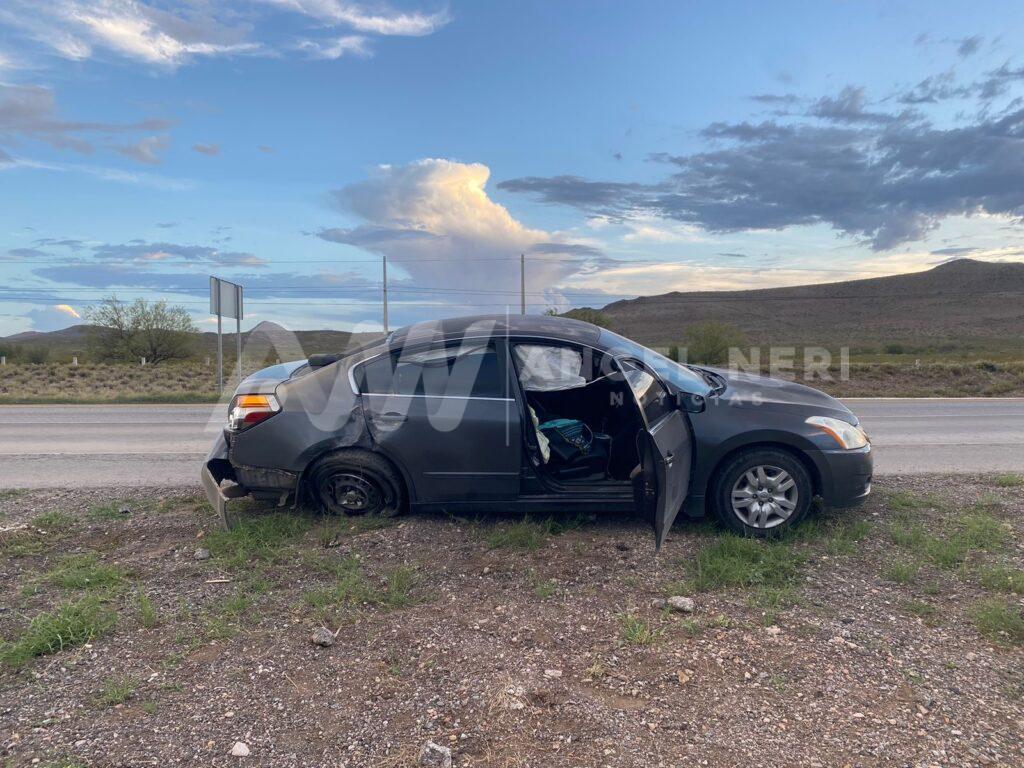Un grave accidente se registró la tarde de hoy en la carretera federal a la altura del kilómetro 178, cerca del entronque con la comunidad de Bachimba, cuando la conductora de un automóvil sedán perdió el control del volante, giró violentamente varias veces sobre el pavimento y terminó fuera del camino con severos daños en la carrocería.