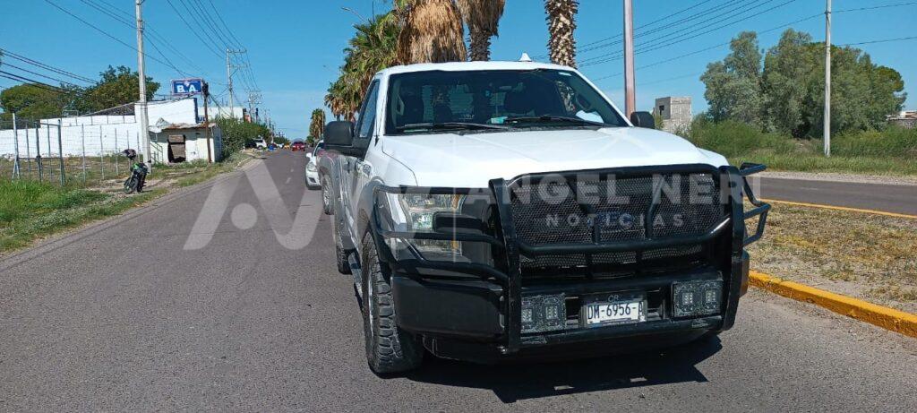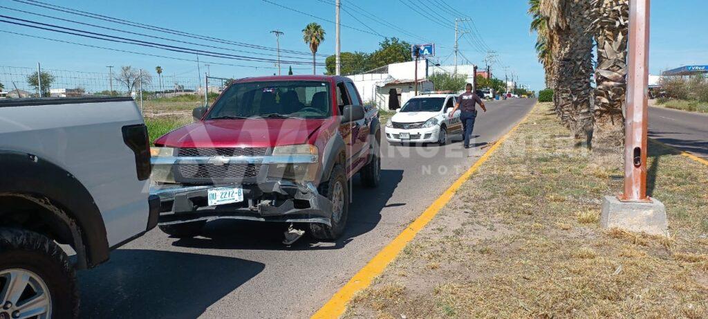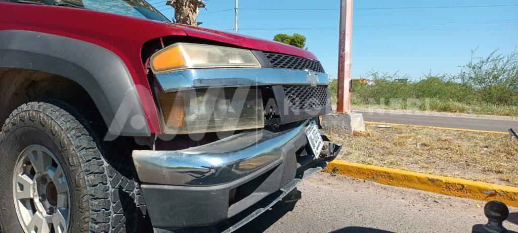 Se tra ta de una camioneta de la marca Chevrolet, tipo Colorado, doble cabina, color roja, con matrículas DU-2272-B, la cual con su parte frontal, impactó la parte posterior de una pick up de la marca Ford, tipo lobo, color blanca, con placas de circulación DM-6956-A, mientras que por fortuna, no hubo personas lesionadas.