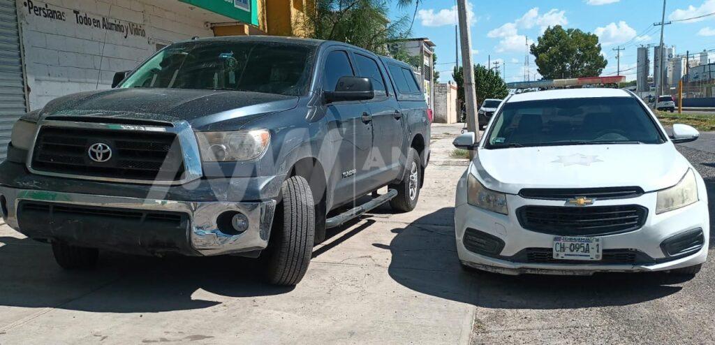 Los vehículos en cuestión son un auto de la marca Ford, tipo Chevy, el cual era conducido por un masculino de aproximados 40 años y una pick up de la marca Toyota, tipo Tundra, ambos de color azul marino,