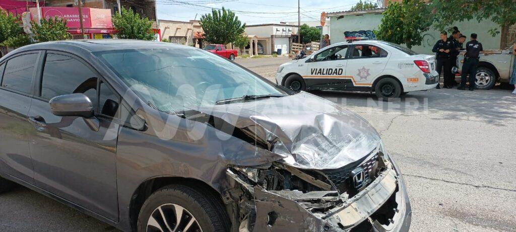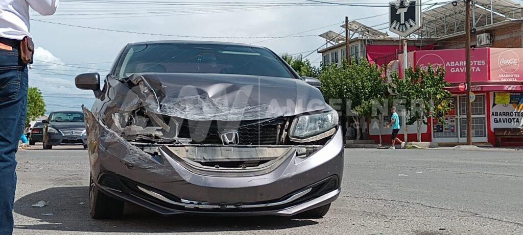 Un aparatoso accidente que se registró a las 3:00 p.m. en la Colonia Lotes Urbanos, específicamente en la intersección de la calle 2a y la avenida 3ra, frente al abarrotes «Gaviota», dejó una persona lesionada y atendida en el lugar por la Cruz Roja y daños materiales estimados en ochenta mil pesos.