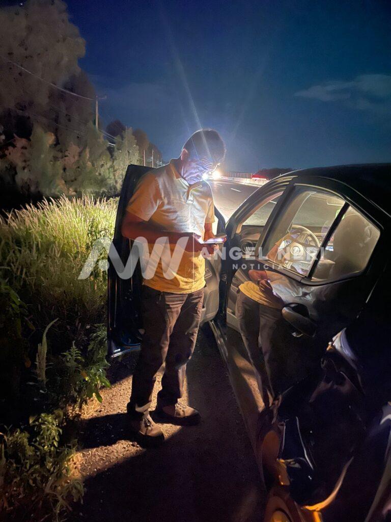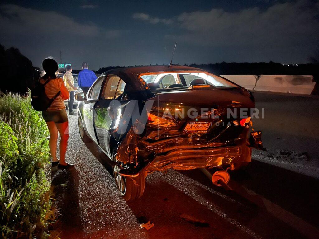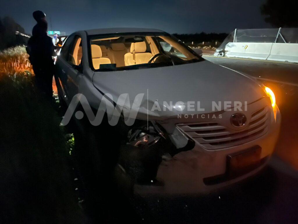 En esa ubicación el guiador de un auto Toyota, color blanco circulaba de sur a norte hacia la capital y en el sentido contrario una pareja que tripulaba un auto Nissan, línea Versa con placas del estado de Baja California Sur CZK-665-A, imprudentemente utilizando el espacio donde faltan los muros y sin percatarse trato de retornar y fue impactado por el auto Toyota.