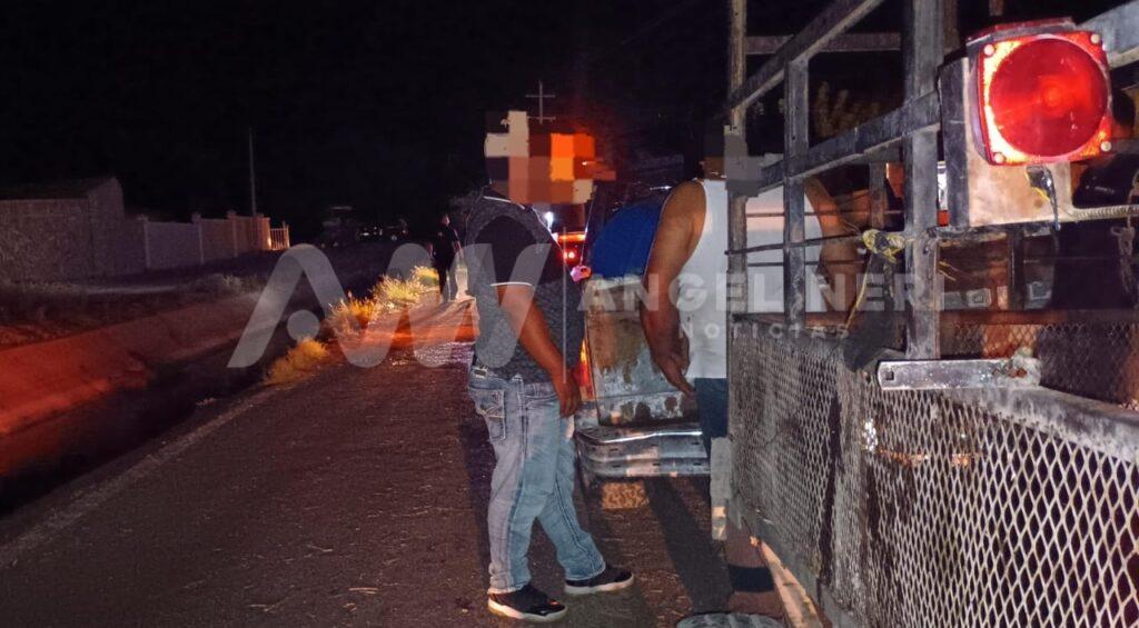 Se trata de una camioneta tipo pick up, de modelo atrasado, la cual jalaba una tráila y de acuerdo a la versión de los agentes de vialidad que levantaron las actas, esta se desplazaba en sentido de poniente a oriente y a pocos metros de llegar al canal principal Conchos, el conductor perdió el control del volante hacia su izquierda, precipitandose hacia el canal.