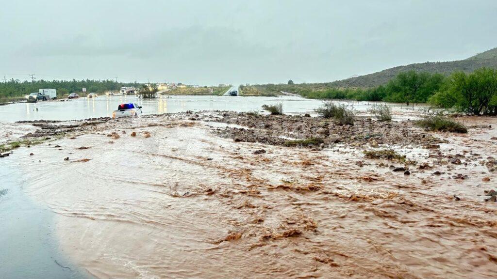 Por otra parte, en la carretera que conduce de Ciudad Juárez a Chihuahua, cerca del kilómetro 84, se presentaron inundaciones repentinas, por lo que se cerró el paso a vehículos de pequeña dimensión en el sentido norte a sur.