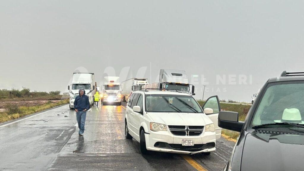Respecto al tramo que conduce de Namiquipa hacia Benito Juárez, se registraron fuertes lluvias y acumulación de granizo en el asfalto. Ante estas circunstancias se pide a los automovilistas transitar con suma precaución, o bien esperar a que la situación se normalice.