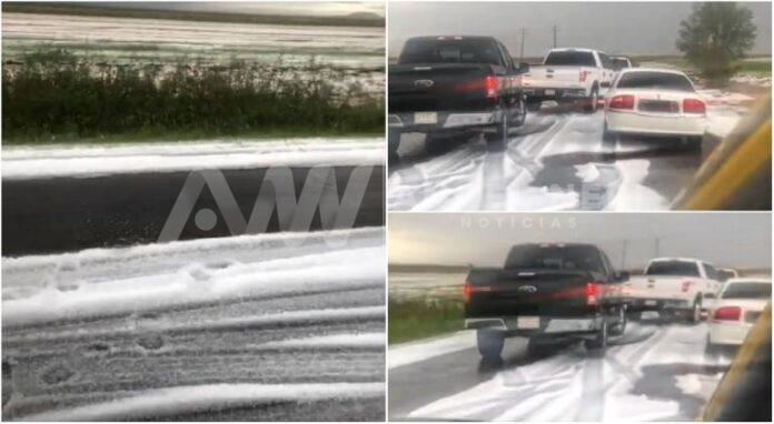 La lluvia estuvo acompañada de una importante granizada, que dejó la cinta asfáltica cubierta de granizo.