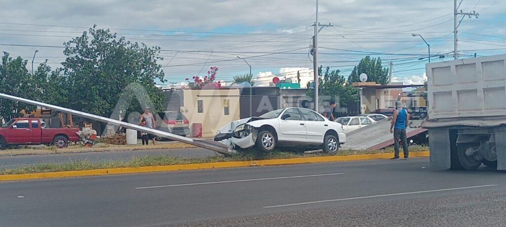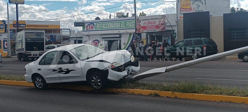 De acuerdo con la información proporcionada por el Departamento de Vialidad, el accidente se originó cuando la acompañante del conductor, una mujer de 75 años, comenzó a sentirse mal y en un intento de ayudarla se distrajo y perdió el control del volante, lo que resultó en la colisión con el poste, que es propiedad del municipio de Delicias.