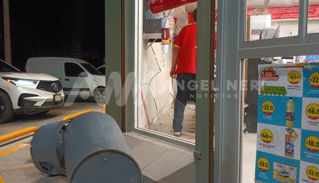 La noche de este viernes, una camioneta tipo Silverado, color verde, protagonizó un accidente al impactar un cesto de basura y posteriormente uno de los cristales de una tienda OXXO en el sector sur, donde los dependientes de la tienda detallaron que el choque ocurrió de manera sorpresiva, causando la destrucción completa del cristal.