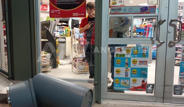 La noche de este viernes, una camioneta tipo Silverado, color verde, protagonizó un accidente al impactar un cesto de basura y posteriormente uno de los cristales de una tienda OXXO en el sector sur, donde los dependientes de la tienda detallaron que el choque ocurrió de manera sorpresiva, causando la destrucción completa del cristal.