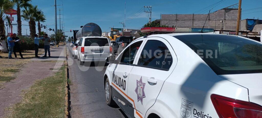 Los vehículos implicados fueron el quinta rueda, este con pipa lechera de grado alimenticio y tractocamion color azul, un taxi del sitio Nuevo Delicias, con número económico 2665 y una camioneta familiar de la marca Dodge, color blanco, con placas del estado de Chihuahua.